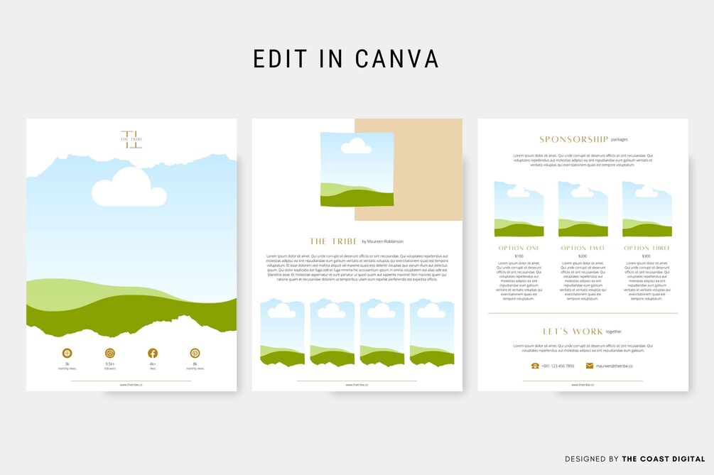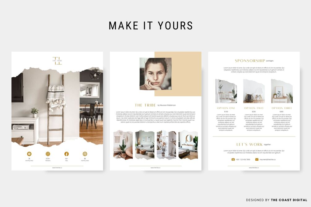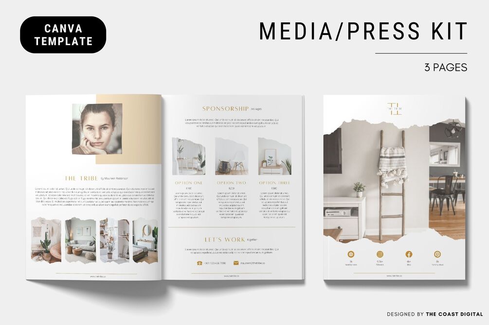 - 3-Page Media Kit Template in US Letter size (8.5 x 11 in)